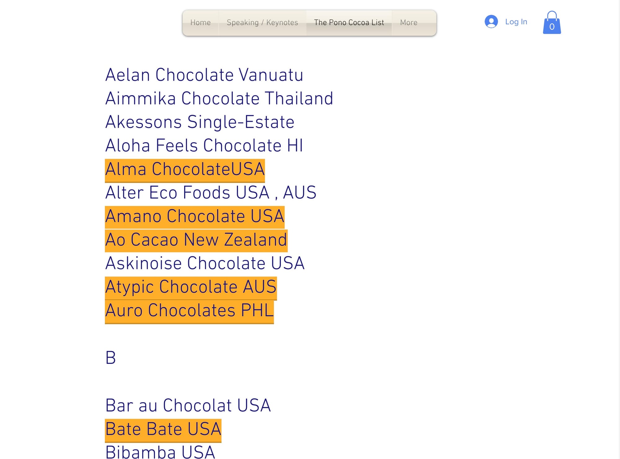 While I am using Pono Cocoa as an example, it is just one example. I can (and will) make some of the same observations about the Slave Free Chocolate list.