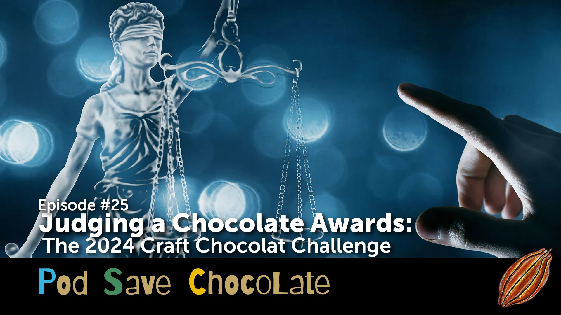 Episode 25 of #PodSaveChocolate features a discussion of judging chocolate awards competitions with a focus on the 2024 Craft Chocolat Challenge.