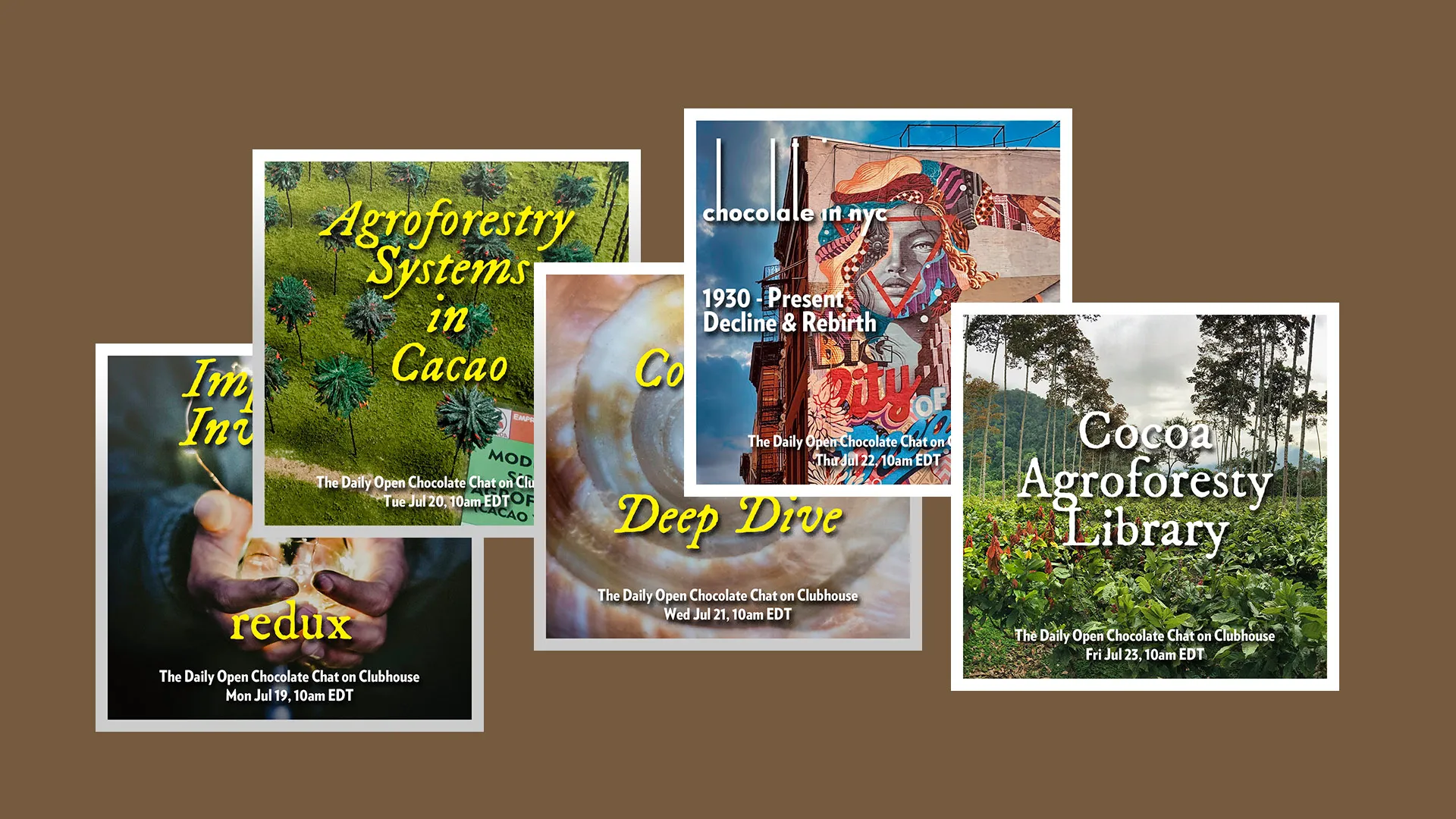 Plan to start your day listening in and participating Live From Brooklyn, NY and streaming globally ... it’s the Daily Open Chocolate Chat on Clubhouse! News, views, and wide-open conversations about topics in cocoa, chocolate, and more Weekdays starting at 10am EDT.